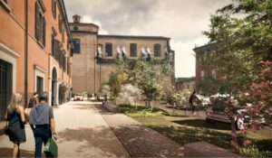 Negli ultimi anni la pianificazione urbana ha dunque progressivamente abbandonato l’idea del piano come atto calato dall’alto. La qualità di un progetto non dipende solo dalla forma finale, ma dal processo che lo genera. Tavoli di ascolto, co-progettazione, confronto con associazioni e operatori non sono un ornamento comunicativo, ma uno strumento operativo. A Cesena questo approccio trova la sua espressione più evidente nel progetto di Palazzo Roverella, grande complesso storico nel cuore del centro, per decenni progressivamente svuotato di funzioni e memoria. L’intervento nasce all’interno del quadro strategico del PUG e si sviluppa attraverso un percorso di co-progettazione che ha coinvolto amministrazione, associazioni, progettisti e soggetti del territorio. Prima ancora che un progetto edilizio, Roverella è un programma funzionale condiviso. Oggi il complesso si prepara a diventare un hub sociale articolato in residenze sociali e co-housing, studentati e affitti calmierati, spazi associativi e culturali, corti aperte e attrezzate come nuovo spazio pubblico permeabile. Le corti interne –ridisegnate come sequenza di spazi verdi differenziati– diventano il dispositivo urbano più interessante: non semplice giardino condominiale, ma sistema di relazioni, attraversamento e sosta. Qui la partecipazione si misura nella governance futura: gestione condivisa degli spazi, coinvolgimento del terzo settore, sperimentazione di modelli abitativi collaborativi. Non è la celebrazione della comunità in astratto, ma la costruzione concreta di un ecosistema urbano misto.