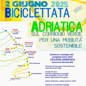 Lunedì 2 Giugno, festa della Repubblica, tutte insieme le Fiab del territorio organizzano la “Biciclettata Adriatica Marche” fino ad Ancona transitando lungo la Ciclovia Adriatica.