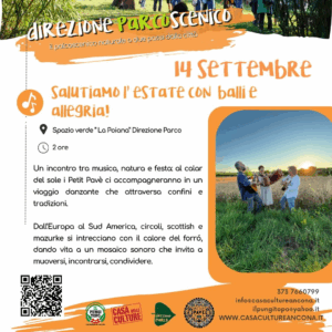 Domenica ultimo appuntamento con “Direzione Parcoscenico”: musica al tramonto con i Petit Pavè. Tra alberi e colori della natura, un viaggio danzante tra Europa e Sud America. L’evento avrà una durata di circa due ore e prevede anche una passeggiata in versione breve o lunga. Qui le info su come arrivare e da dove partire: https://www.facebook.com/direzioneparco