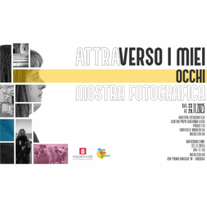 “Attraverso i miei occhi” è la mostra fotografica che raccoglie gli scatti realizzati dalle persone con disabilità che hanno partecipato al Laboratorio Fotografico Inclusivo, frutto della collaborazione tra il Centro Papa Giovanni XXIII di Ancona e InsolitoLab. I partecipanti hanno imparato a conoscere la fotografia come strumento di libertà, espressione e relazione. E ora condividono con tutti noi il loro punto di vista. Inaugurazione domenica 23 novembre ore 17 in via Primo Maggio 16. Aperitivo a cura di Fricchiò.
