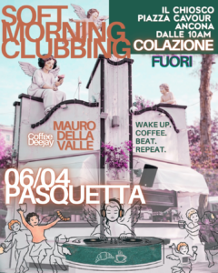 A Pasquetta il primo soft clubbing delle Marche al Chiosco di Piazza Cavour, musica da club col cappuccino in mano. Un modo nuovo di vivere la musica, più leggero, più libero, prende piede anche in città. In consolle: Mauri Della Valle. Dalle ore 10