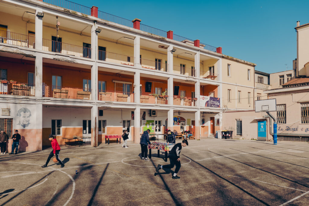 «È il luogo dell’incontro e della relazione non strutturata -racconta il Direttore-. Don Bosco teneva più al cortile che all’aula scolastica, diceva che un buon professore non è solo quello che sa insegnare, ma quello che si butta nel cortile a giocare con i ragazzi, perché quello è il luogo senza barriere sociali, in cui ognuno si manifesta per ciò che è. Lì un educatore può fare la differenza».